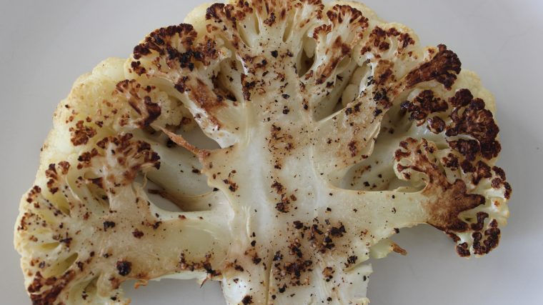 I admit that cauliflower steaks sounds like a meat-lover's worst nightmare - something they would have to eat as the only viable option at a vegetarian restaurant. I think you will be pleasantly surprised, however, with the heartiness (dare i say meatiness) of the cauliflower as well as its versatility. Modest flavor allows it to pair nicely with others without stealing the show - a good alternative to roasted root vegetables. On its own, serve it with a drizzle of balsamic syrup to enhance its sweetness.