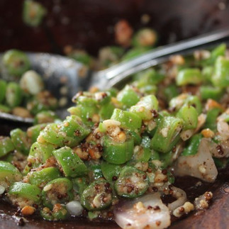 Heat up a tbl or two of sesame oil in a large sauté pan. Add edamame and green beans and cook, stirring occasionally, until nicely charred (about 10 minutes). Pour in the fish sauce and soy sauce, scraping up any bits stuck to the pan, and remove from heat.